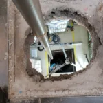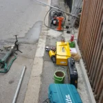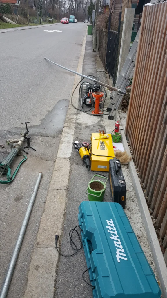 Die folgenden Bilder dokumentieren Schlagbrunnenbau bei engen Zugängen, Innenhöfen und schwer erreichbaren Gartenanlagen.